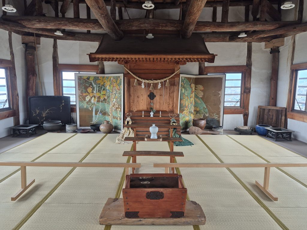 Kifune Castle’s interior features vintage Japanese artwork, shrines, furnishings, and be sure to step on the balcony at the top floor for the best view!