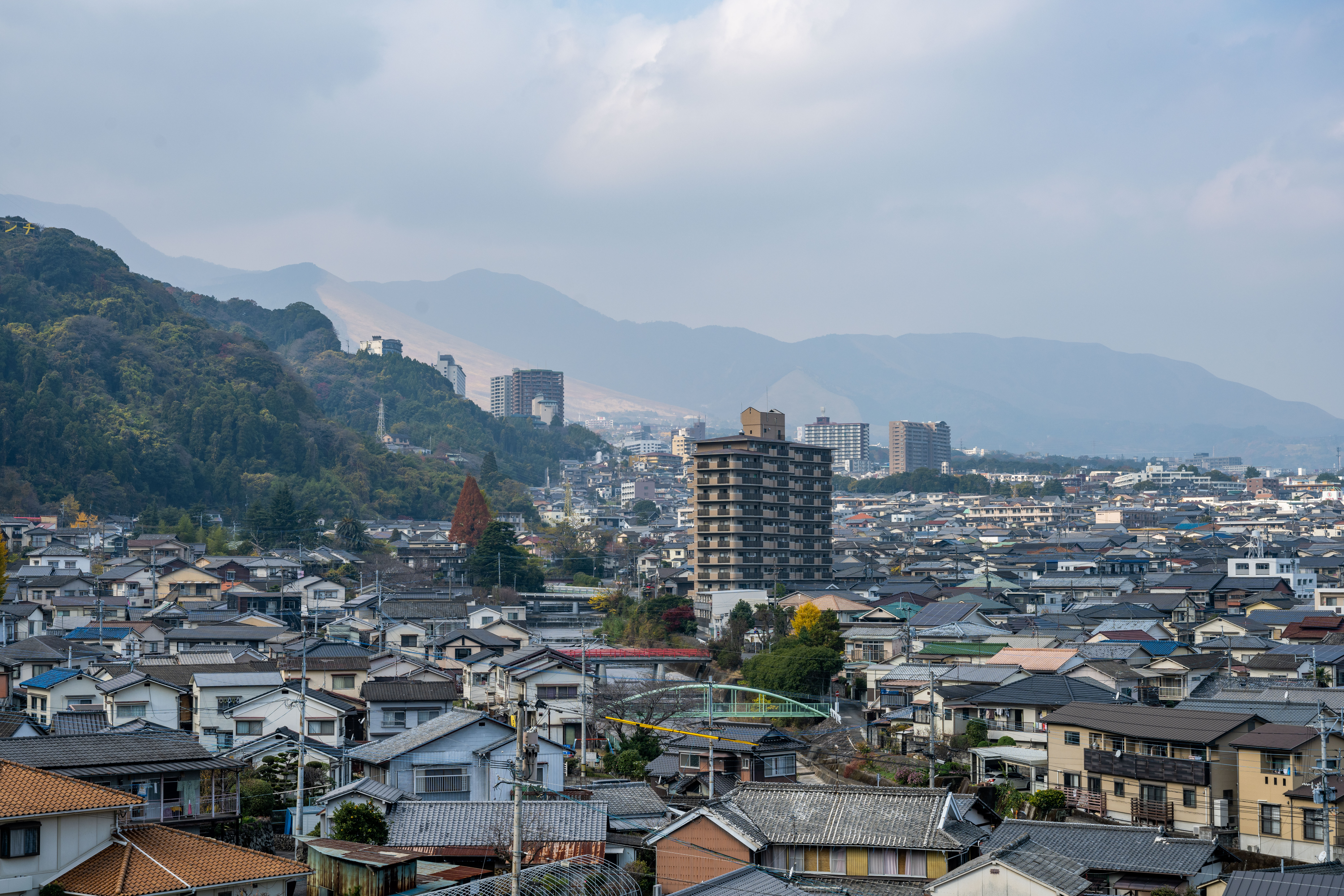 This TV tower has an observation deck on the 16th and 17th floor that offers a 360-degree panoramic view of hot spring steam going up in Beppu City, Beppu Bay, and its surrounding mountains!