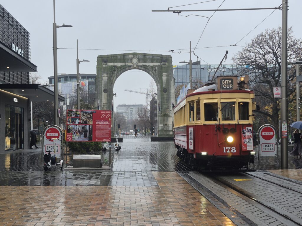 While walking by the Bridge of Remembrance, it was impossible to miss one of the Historic Trams! In 1880, the City of Christchurch launched steam trams, which were changed to electric trams in 1905. It used to be the largest tram networks in New Zealand.