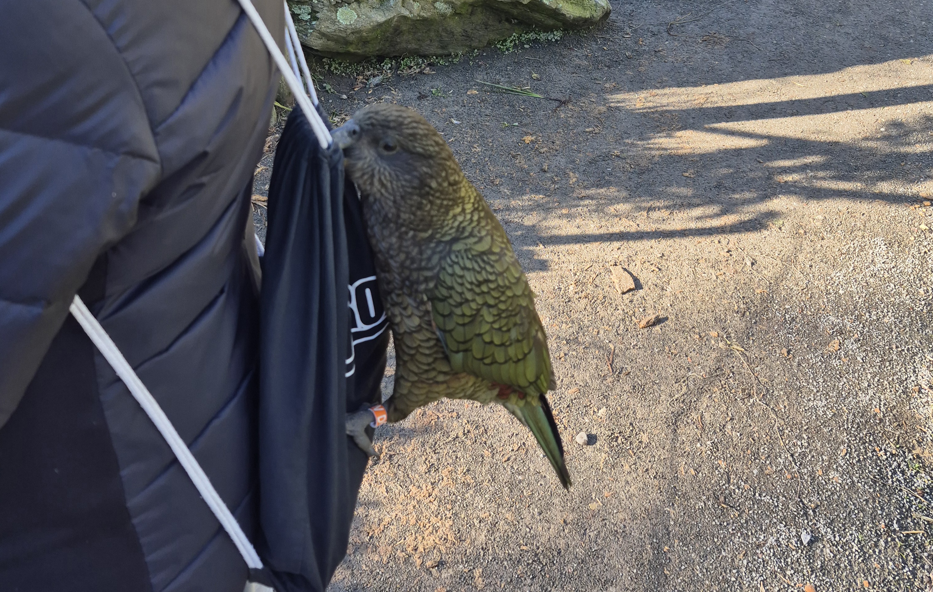 From left to right: Takahe, cheeky kea trying to get inside by bag, and a brown kiwi. Picture #3 is credit of Wikimedia Commons.