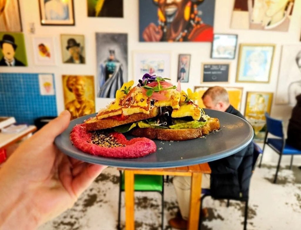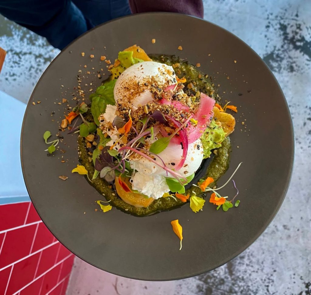 Smashed avocado sandwich with poached eggs and Halloumi Stack. Photo credit: Belle Café and Micro Roastery.