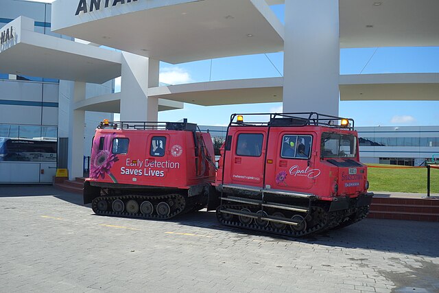 One of the Hägglund vehicles and the Polar Storm room (photo credit: Madeleine Deaton on Wikimedia Commons).