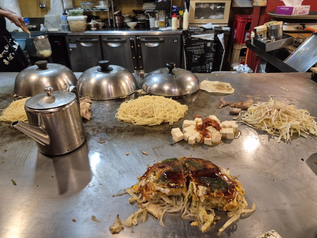 As soon as I entered the restaurant, I was warmly welcomed by the staff. Besides, while Okonomiyaki is usually not vegetarian, the chef was more than happy to prepare a yummy veggie one right in front of my eyes!