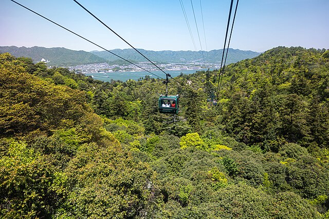 Visitors can take a ropeway from Momijidani Station (10 minutes from Itsukushima Shrine), which takes about 20 minutes. Once you get to the upper station at Shishi-iwa Observatory, it takes about 30 minutes to walk up to the summit. The trail is rather steep, so be sure to wear sturdy shoes.
